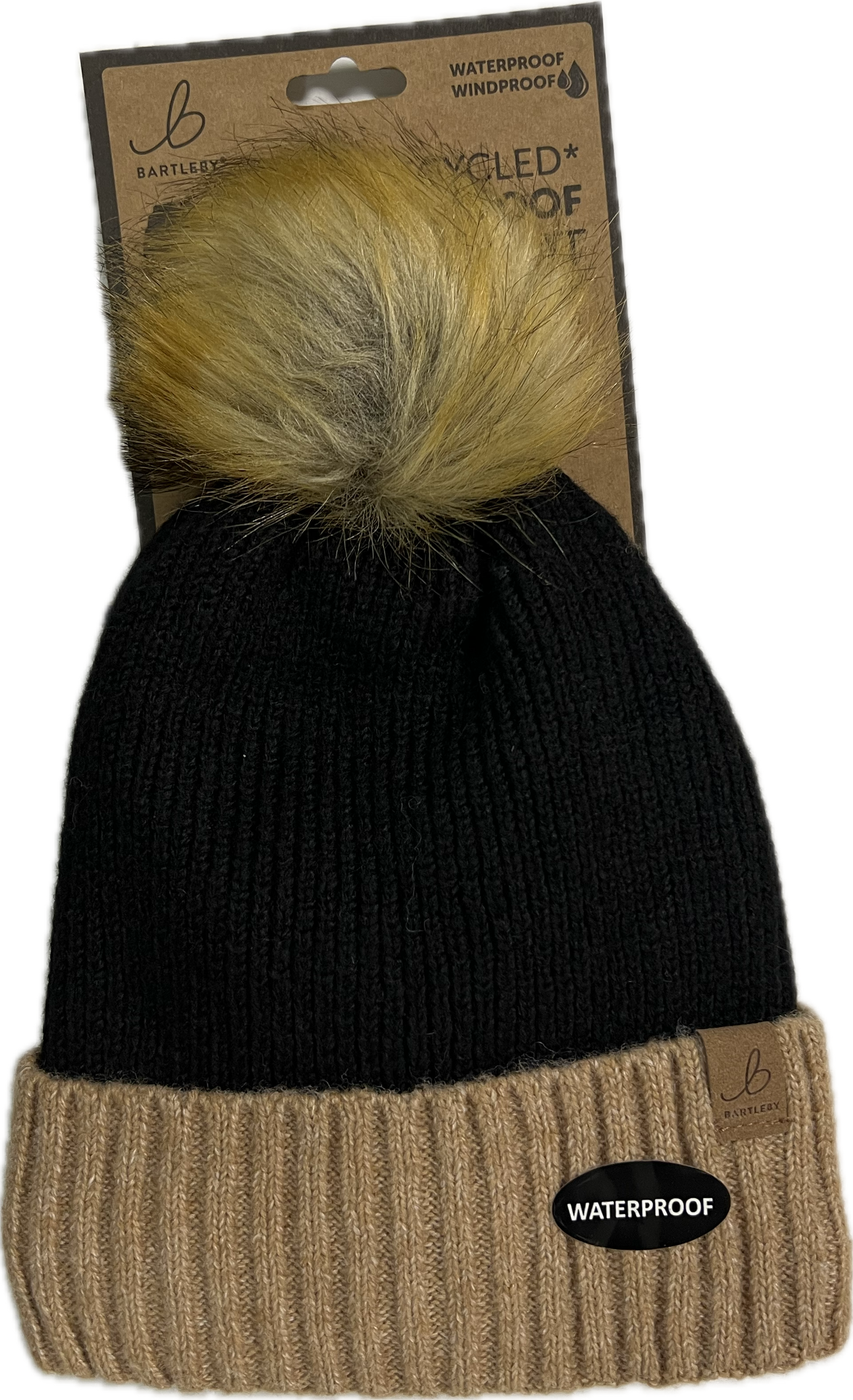 Waterproof Sherpa Knitted Bobble Hat – Beige/White & Black/Beige