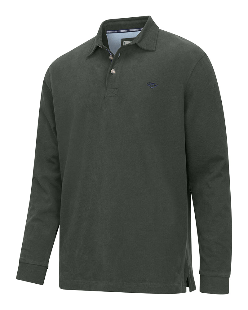 The Hoggs of Fife Moffat Long Sleeve Rugby Shirt is a hardworking, everyday essential for life in the countryside. Made from soft yet sturdy cotton, this mens rugby shirt can take on everything from early starts on the farm to daily dog walks. The diamond-stitched elbow patches are built to handle hard graft and everyday wear, so you don’t have to think twice about putting it through its paces. The classic design is kept simple with branded buttons and a small embroidered logo; fitting right in with the rest of your country clothing. Layer it under a quilted gilet or waterproof jacket for a reliable middle layer on chilly days, or let it stand out as a smart yet casual top layer when the weather is fair. Some shirts are for show – this one’s for getting on with the day!