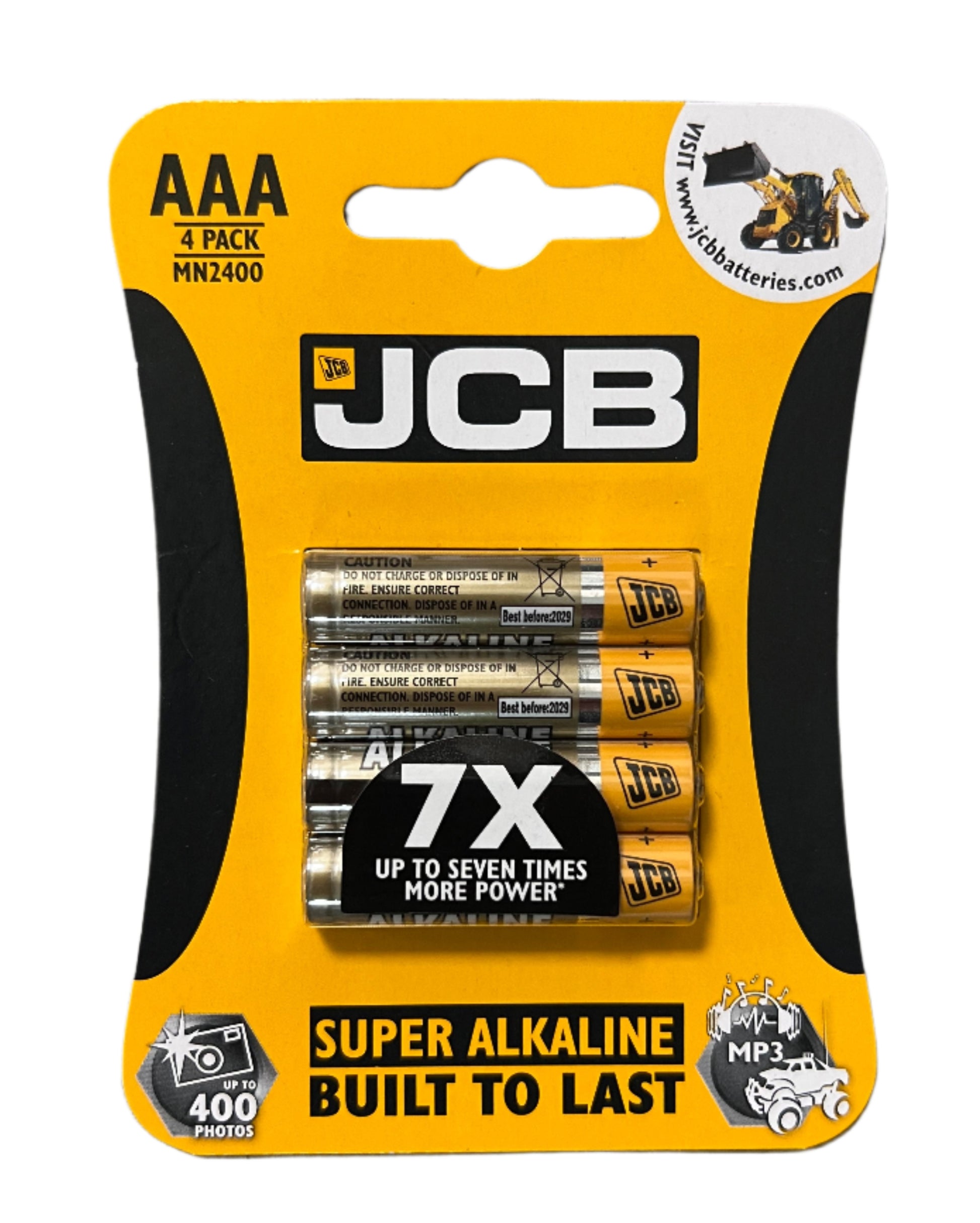The JCB Super Alkaline AAA Battery 4 Pack provides up to seven times more power, offering dependable and extended performance for your devices.