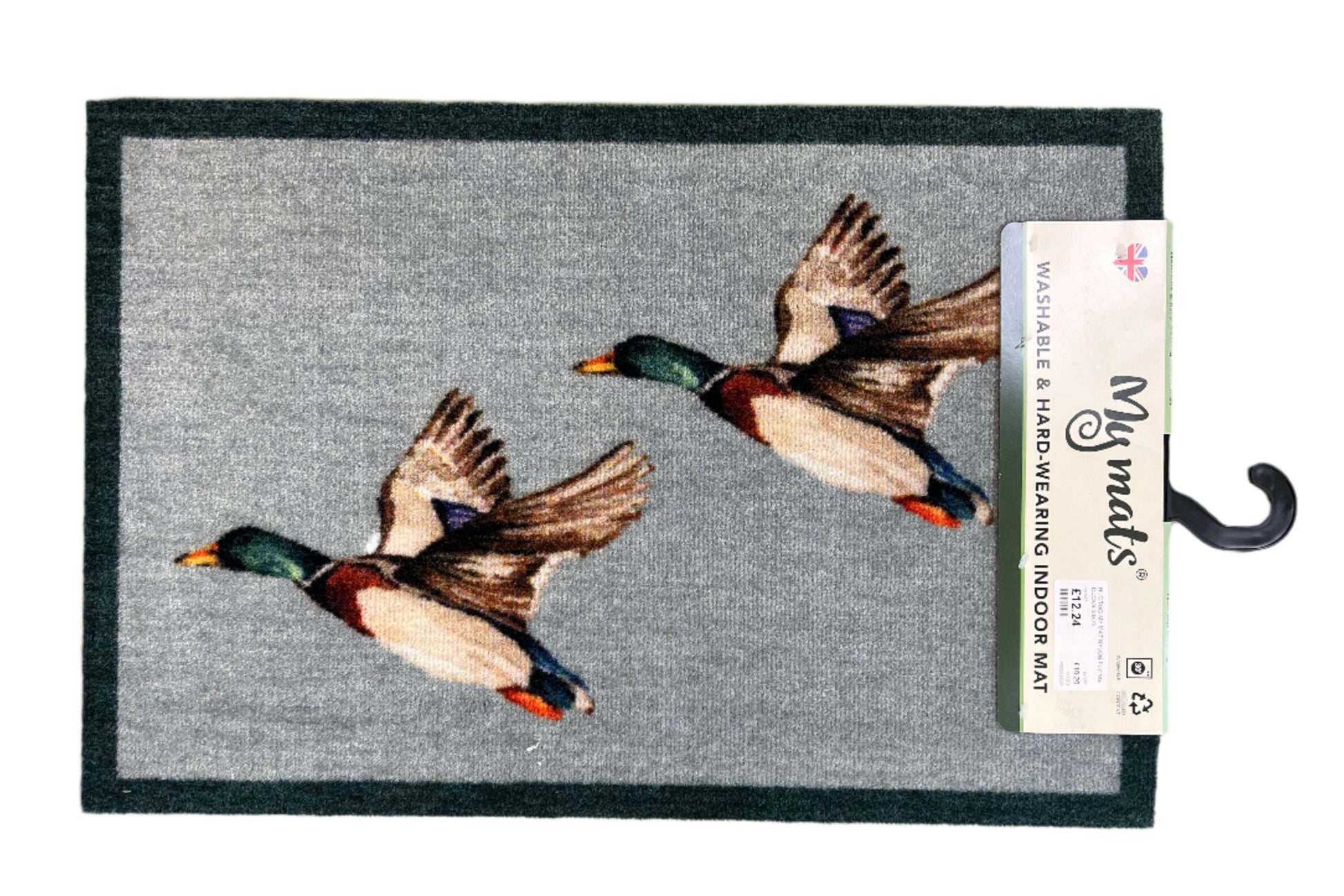 The my mats Nylon doormat with grey backdrop & flying ducks design combines eco-friendly materials with lasting durability. Its effective mud-trapping ability helps maintain clean floors, while the 50x75cm size fits conveniently in any entryway. This mat is washable, non-slip, stain-resistant, and can absorb up to three times its weight in water, making it a reliable and practical choice for your home.