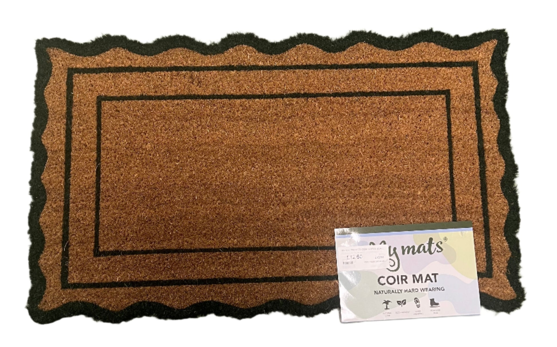 This My Mats Coir Mat features a charming Printed Green Scallop Border design and is made from natural, eco-friendly coir. Its sturdy construction effectively cleans mud from shoes, keeping your floors neat and spotless. Measures 45x75 cm.