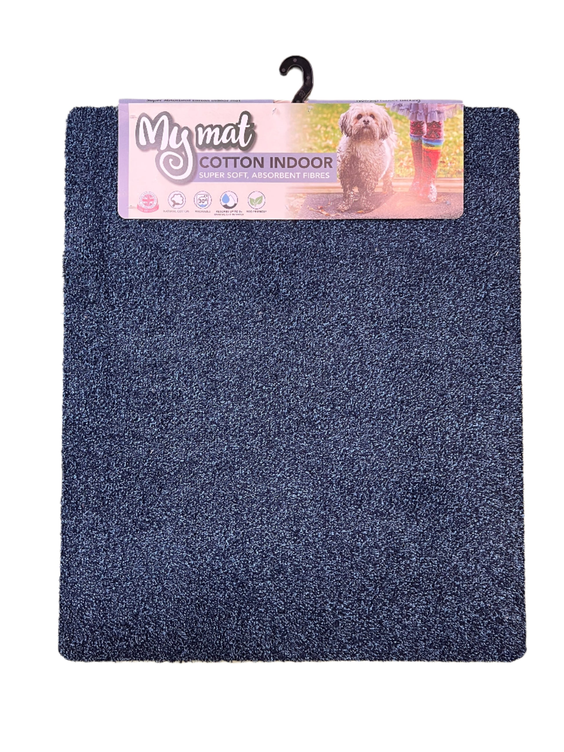 The My Mat Indigo Cotton Indoor Door Mat is crafted with ultra-soft, highly absorbent fibres that can soak up to three times their weight in moisture. It is also machine washable for convenient cleaning.