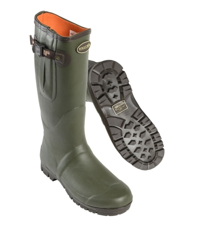 These Percussion Sologne Neoprene Boots combine waterproof natural rubber with a 4 mm neoprene lining for superior protection and comfort. Featuring a removable insole and an adjustable gusset strap, they ensure easy wear and a secure fit. The non-slip rubber sole with deep, wide tread offers excellent grip, while the anti-torsion steel reinforcement provides stability. Designed ergonomically with high-quality cushioning, these boots deliver lasting support for demanding outdoor conditions.